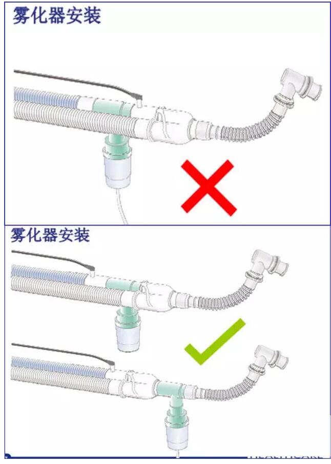 注意:使用加热丝呼吸管路时,雾化器应该连接在温度探头的前端,不是后端!