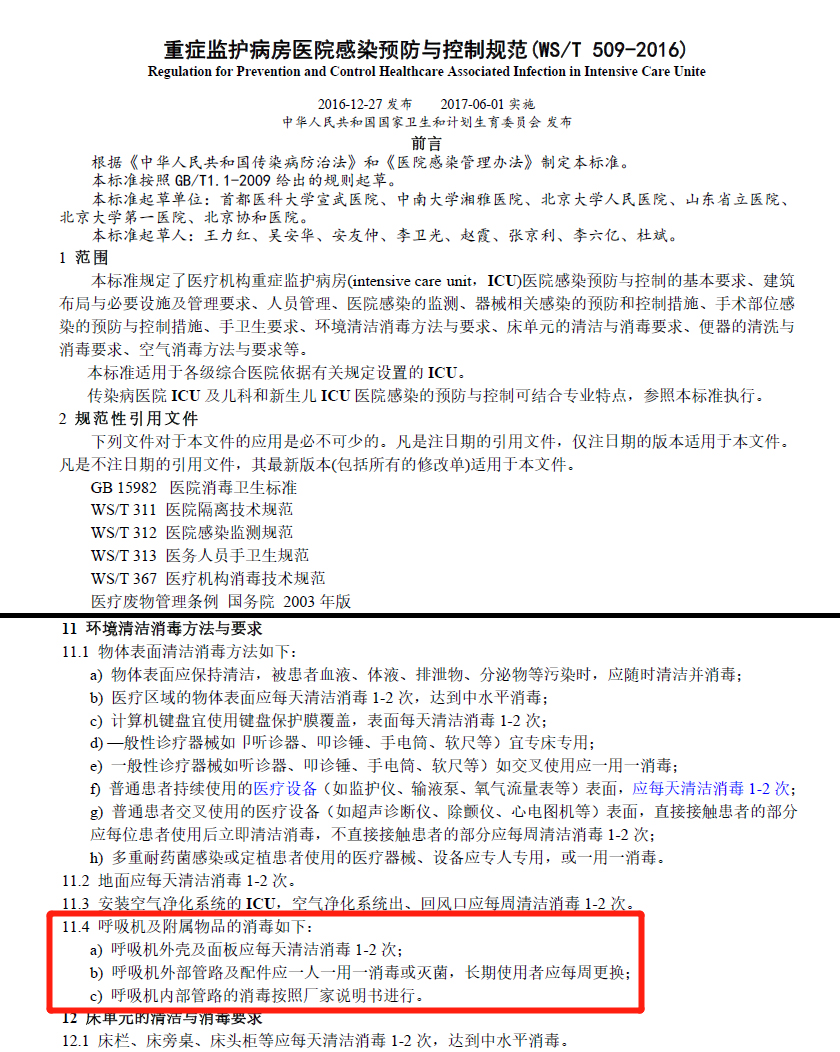 重症监护病房医院感染预防与控制规范(WS/T 509-2016)