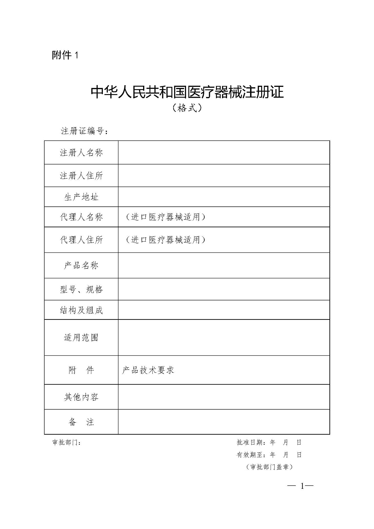 医疗器械产品注册证格式